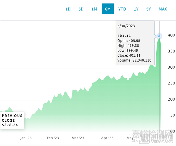 生成式AI(Generative AI)的市場空間究竟有多大,這個(gè)數(shù)字隨著新興機(jī)會如雨后春筍般冒出正在不斷被改寫。但可以確定的是,正是因?yàn)锳IGC的火熱,又一家市值萬億美元的企業(yè)即將誕生——隨著AI核心算力供應(yīng)商英偉達(dá)(NVIDIA)在5月29日進(jìn)一步“All-in-AI”,其股價(jià)在5月31日一度突破419美元,使其市值超越了萬億美元。