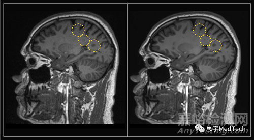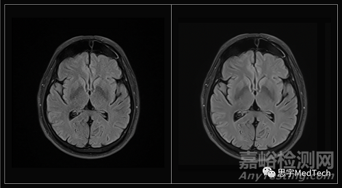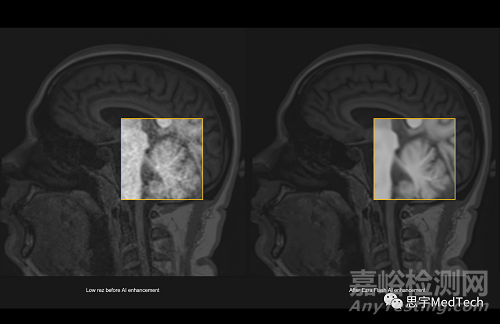 ▲(圖左為未使用AI技術(shù)形成的MRI圖像,圖右為Ezra Flash AI增強(qiáng)后圖像)