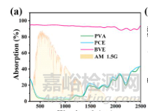 圖2:PVA水凝膠、PCE、BVE在200-2500nm范圍內(nèi)的UV-Vis-NIR吸收光譜