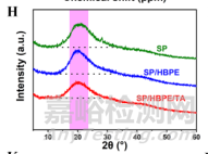 X射線粉末衍射(XRD)中的晶體學(xué)模式(和結(jié)晶度(圖S6)在加入TA后降低,歸因于強(qiáng)H鍵對(duì)結(jié)晶過程中SP基質(zhì)分子重排的限制,而結(jié)晶度的降低增強(qiáng)了斷裂應(yīng)變。