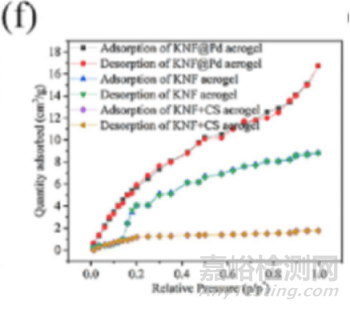 圖13:KNF@Pd氣凝膠、KNF氣凝膠和KNF+CS氣凝膠氮?dú)馕?解吸等溫線