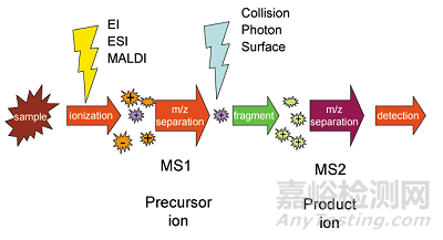 既然問題是“質(zhì)譜是怎樣做到定量的?”,我們不妨把質(zhì)譜信號的產(chǎn)生按時間順序粗略分為三個步驟,即離子的產(chǎn)生,傳輸與檢測。