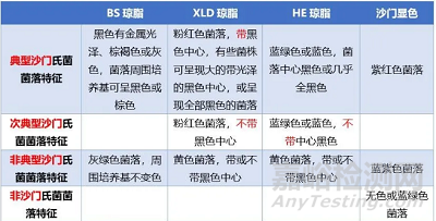 不同的廠家的沙門氏顯色培養(yǎng)基,由于其培養(yǎng)基上的酶底物和顯色基團不同,所以形成的菌落特征就不同,按照廠家的說明書判斷。
