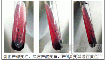 注意:三糖鐵瓊脂要配制為高層斜面,接種針挑取菌落,于高層斜面上劃線,再穿刺(穿刺針不要破壁,不要穿透,距底部5mm左右即可);同時用穿刺過的接種針接種賴氨酸脫羧酶反應管(分為賴氨酸脫羧酶反應管和對照管,兩者都有要接種,表面覆蓋2-3滴液體石蠟,防止氧化)。