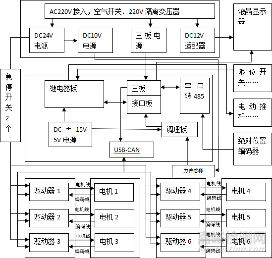 根據(jù)框圖,我們可以分析到低壓直流配線與AC220V配線間的輻射干擾,主板接口線、絕對位置編碼器線、CAN通信線、直流電源線、電機線、編碼線等線間相互干擾等。都可能會干擾PC和機械手臂的正常工作。
