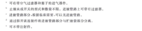 應(yīng)包含YY/T 0611《一次性使用靜脈營養(yǎng)輸液袋》適用的相關(guān)性能,申報產(chǎn)品的結(jié)構(gòu)非YY/T 0611的設(shè)計結(jié)構(gòu),或在YY/T 0611給出的結(jié)構(gòu)基礎(chǔ)上還有其它設(shè)計元素的,應(yīng)制訂與之相關(guān)的性能要求,如進(jìn)液管路上裝配的藥液過濾器等。