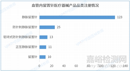 從產(chǎn)品品類來看,截至2023年5月,在有效期內(nèi)的血管內(nèi)留置針醫(yī)療器械產(chǎn)品中靜脈留置針醫(yī)療器械注冊數(shù)量排名第一,有123項。