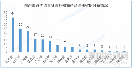 2.5 國產(chǎn)血管內(nèi)留置針醫(yī)療器械產(chǎn)品注冊省份分布情況