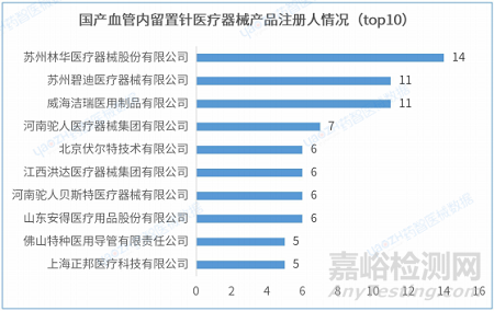 2.6 國產(chǎn)血管內(nèi)留置針醫(yī)療器械產(chǎn)品注冊人情況(top10)