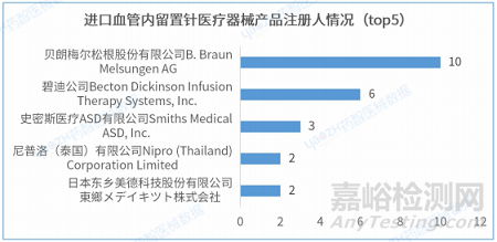 2.8 進口血管內(nèi)留置針醫(yī)療器械產(chǎn)品注冊人情況(top5)