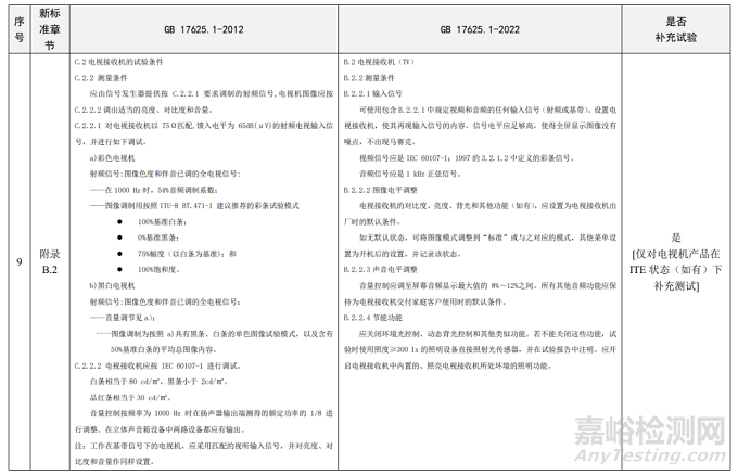 新標(biāo)準(zhǔn)更改了電視接收機(jī)的試驗(yàn)條件,更加適合于當(dāng)下電視機(jī)的性能參數(shù)的配置,更改內(nèi)容主要體現(xiàn)在亮度調(diào)節(jié)、音量調(diào)節(jié)、節(jié)能功能等方面。需要注意的是,本次標(biāo)準(zhǔn)換版無需針對電視接收機(jī)功能對產(chǎn)品進(jìn)行補(bǔ)充測試,僅需對電視機(jī)產(chǎn)品在ITE狀態(tài)(如有)下補(bǔ)充測試。