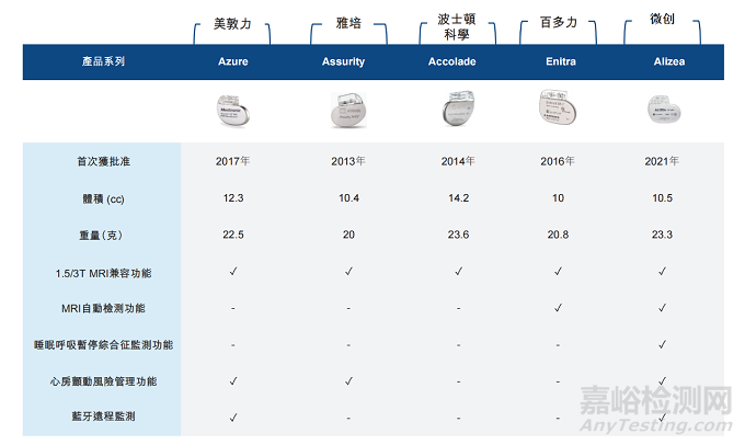 大部分的商業(yè)化?臟起搏器由五家跨國公司開發(fā)。下表載列該等公司于美國、歐盟及╱或中國獲批的最新主要起搏器的比較: