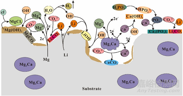 圖6:Mg-Li-Ca合金的腐蝕機(jī)理示意圖