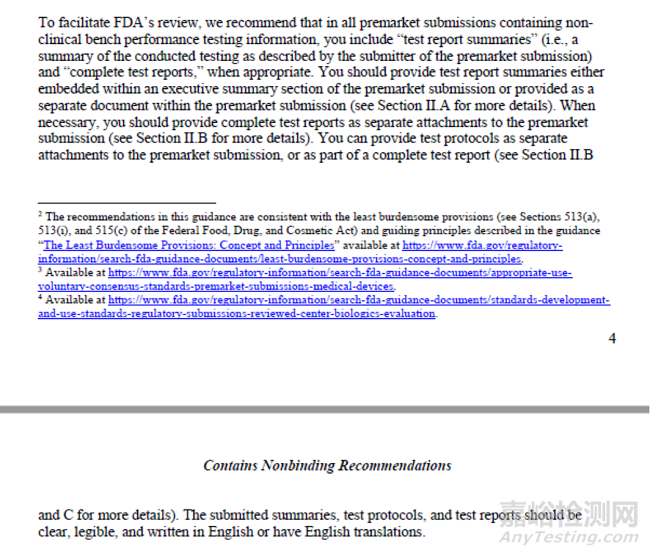 測(cè)試報(bào)告摘要的這一部分可用于提供有關(guān)進(jìn)行的測(cè)試和/或觀察到的測(cè)試結(jié)果的附加信息(例如,用于執(zhí)行測(cè)試的方法的合理性、驗(yàn)收標(biāo)準(zhǔn)的臨床/科學(xué)工程基礎(chǔ)、異常和異常 結(jié)果)。請(qǐng)注意,如果方法和/或驗(yàn)收標(biāo)準(zhǔn)是直接從 FDA 認(rèn)可的共識(shí)標(biāo)準(zhǔn)或指導(dǎo)文件中直接獲得的,則通常不需要對(duì)其進(jìn)行論證。如果需要,對(duì)測(cè)試方法或驗(yàn)收標(biāo)準(zhǔn)的討論可以包括測(cè)試如何與臨床實(shí)踐中或文獻(xiàn)中描述的設(shè)備使用相關(guān)。例如,跟蹤測(cè)試通常使用模擬目標(biāo)解剖結(jié)構(gòu)的夾具。對(duì)所用跟蹤測(cè)試夾具的討論或論證將解決測(cè)試如何與指定解剖位置的預(yù)期最壞情況臨床使用相關(guān)。對(duì)于為表征目的而進(jìn)行的非臨床工作臺(tái)性能測(cè)試,結(jié)論應(yīng)說(shuō)明結(jié)果與設(shè)備預(yù)期性能之間的關(guān)系。如上所述,關(guān)于測(cè)試結(jié)果如何支持整體提交的簡(jiǎn)短討論可以包含在測(cè)試報(bào)告摘要或您提交的其他位置。