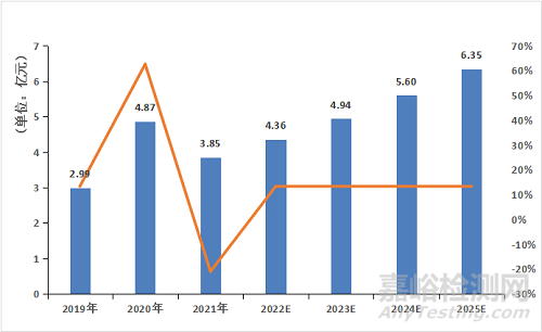 圖1 2019年至2025E中國急救和轉(zhuǎn)運(yùn)呼吸機(jī)市場(chǎng)規(guī)模