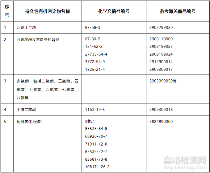 關(guān)于多氯萘等5種類持久性有機(jī)污染物環(huán)境風(fēng)險(xiǎn)管控要求的公告