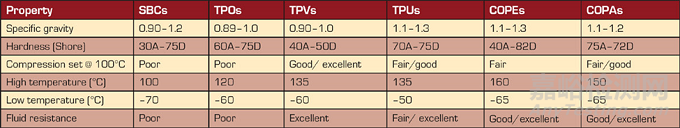 表I. 不同TPE系列的性能特點(diǎn)。