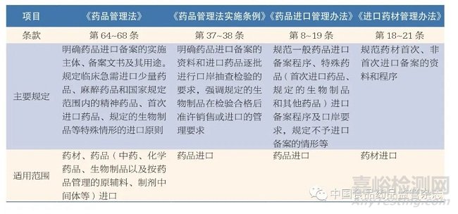 表1 法律、法規(guī)、規(guī)章對(duì)藥品進(jìn)口備案的管理規(guī)定