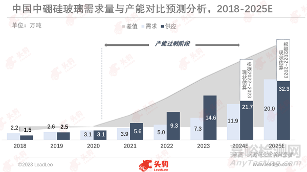 從整體市場(chǎng)來看,自2021年起,隨著技術(shù)的發(fā)展、政策的倡導(dǎo)以及市場(chǎng)替換升級(jí)的推動(dòng),中硼硅玻璃的產(chǎn)量逐步大于需求量,且增速逐年遞增。若產(chǎn)能照現(xiàn)有速度擴(kuò)張,預(yù)計(jì)至2025年,中硼硅玻璃年產(chǎn)量將擴(kuò)大至32.3萬噸,超出預(yù)計(jì)年需求量12.3萬噸。加之頭部企業(yè)的中硼硅玻璃不斷放量,或壓縮低硼硅和鈉鈣玻璃的市場(chǎng)空間,市場(chǎng)因此出現(xiàn)產(chǎn)能過剩現(xiàn)象,造成供給和需求結(jié)構(gòu)失衡。