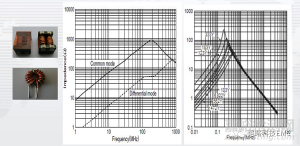 大電流共模電感與傳統(tǒng)共模電感的阻抗特性對比圖如下: