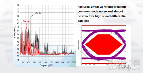 原理是流過共模電流時磁環(huán)中的磁通相互疊加,從而具有相當(dāng)大的電感量,對共模電流起到抑制作用,而當(dāng)兩線圈流過差模電流時,磁環(huán)中的磁通相互抵消,幾乎沒有電感量,所以差模電流可以無衰減地通過。因此共模電感在平衡線路中能有效地抑制共模干擾信號,而對線路正常傳輸?shù)牟钅P盘枱o影響。