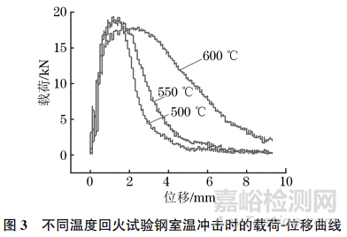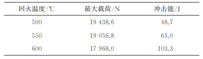 表1 不同溫度回火試驗鋼室溫沖擊時的最大載荷和沖擊能