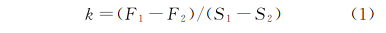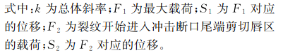 通過以上分析可知,沖擊裂紋擴展部分的載荷-位移曲線的總體斜率與沖擊試驗溫度具有一定的相關(guān)性。沖擊裂紋擴展部分載荷-位移曲線的總體斜率計算公式如下: