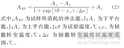 使用Boltzmann函數(shù)對沖擊試驗溫度和試樣所消耗的沖擊能進行回歸分析,公式如下: