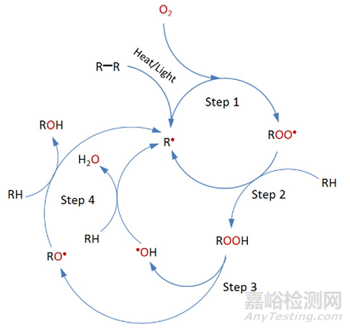 因此研究聚合物的氧化或光照穩(wěn)定性就是研究是否會(huì)誘發(fā)自由基并引發(fā)聚合物的鏈?zhǔn)椒磻?yīng)的機(jī)制。