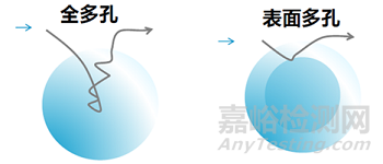 圖13,全多孔與表面多孔顆粒傳質(zhì)路徑對(duì)比
