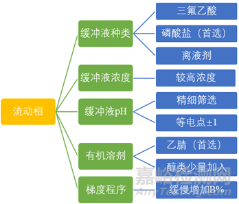 緩沖液:可選常用的三氟乙酸、磷酸緩沖液,調(diào)控pH和離子強(qiáng)度減少離子化作用,根據(jù)需要可使用較高濃度;