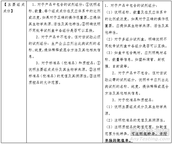 二、【主要組成成分】項(xiàng)下需載明的主要組成成分有待明確。目前,監(jiān)管方、申請人和使用者基于關(guān)注點(diǎn)不同,對哪些成分屬于主要組成成分的理解不同。同時(shí)申請人基于對申報(bào)產(chǎn)品配方的保護(hù),會隱去部分組分,如抗生物素抗體、抗體阻斷劑、緩沖液的特殊配方等。這就造成了審評過程中大量針對此項(xiàng)內(nèi)容書寫規(guī)范的發(fā)補(bǔ)。因此,需要基于目前的產(chǎn)業(yè)情況,平衡知識產(chǎn)權(quán)的保護(hù)和監(jiān)管需求,明確說明書【主要組成成分】項(xiàng)下需載明的具體內(nèi)容。