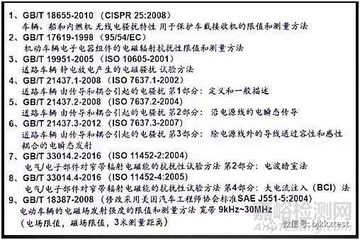 ▲ 中國(guó)EMC汽車(chē)相關(guān)標(biāo)準(zhǔn)