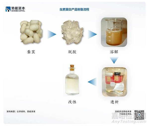 絲素蛋白在美容和護(hù)膚領(lǐng)域中,也具有強(qiáng)大的優(yōu)勢(shì)和發(fā)展空間,目前化妝品的應(yīng)用中,小分子量絲素蛋白更多是作為添加劑使用, 絲素蛋白組成成分亮氨酸可加速細(xì)胞的新陳代謝,絲氨酸、蘇氨酸可延緩皮膚老化,色氨酸、酪氨酸能吸收紫外線,同時(shí)絲素蛋白在皮膚表面成膜后,可以防止皮膚的水分流失具有保濕功效。如Evolved by nature 公司旗下的Silk Therapeutics研發(fā)了基于絲素蛋白材料護(hù)膚品系列并成功推向市場(chǎng),該公司曾獲得香奈兒領(lǐng)投的7000萬(wàn)美元B輪融資。