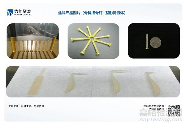 近年來(lái),國(guó)內(nèi)從事絲素蛋白醫(yī)療產(chǎn)品的研發(fā)企業(yè)也逐漸增多,基于絲素蛋白的醫(yī)療產(chǎn)品不斷涌現(xiàn),當(dāng)前獲批的主要為軟質(zhì)材料,如絲素蛋白創(chuàng)面敷料(2012)和絲素蛋白膜狀敷料產(chǎn)品(2020)均已獲得NMPA批準(zhǔn),用于皮膚修復(fù);2022年可吸收絲素修復(fù)膜作為物理屏障用于成人患者拔牙后的拔牙窩位點(diǎn)保存,也通過(guò)了NMPA的批準(zhǔn)。我們認(rèn)為隨著硬質(zhì)絲素蛋白臨床試驗(yàn)的進(jìn)行及相關(guān)的生產(chǎn)工藝技術(shù)進(jìn)一步成熟,絲素蛋白在醫(yī)療領(lǐng)域的應(yīng)用將會(huì)逐漸從軟質(zhì)材料發(fā)展到硬質(zhì)材料,如骨釘骨板、人造軟骨等。