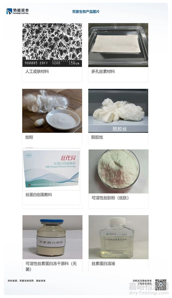 絲美特生物:蘇州絲美特生物技術(shù)有限公司成立于2013年,公司定位絲素蛋白新型生物材料及其衍生產(chǎn)品研發(fā)、生產(chǎn)和銷(xiāo)售,目前已經(jīng)申報(bào)10余項(xiàng)絲素蛋白材料領(lǐng)域的國(guó)內(nèi)外專(zhuān)利。絲美特首席科學(xué)家王曉沁教授曾擔(dān)任美國(guó)Tufts大學(xué)David Kaplan團(tuán)隊(duì)助理教授,對(duì)天然絲素蛋白生物材料的工業(yè)化制備進(jìn)行了多年深入研究,并創(chuàng)建了蘇州大學(xué)-Tufts大學(xué)生物醫(yī)用材料聯(lián)合實(shí)驗(yàn)室。目前公司已經(jīng)具有絲素蛋白凍干粉、絲素蛋白乳液、凍干精華球等多種形態(tài)、規(guī)格的原材料,同時(shí)具備水凝膠、絲素微球、絲素蛋白敷料等多種基材料的能力。