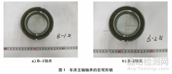 車床主軸軸承的宏觀形貌如圖1所示,兩個軸承分別標記為B-1 和B-2,軸承外觀無明顯損傷。
