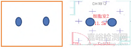 采樣點(diǎn)的布置和數(shù)目根據(jù)潔凈室環(huán)境以及結(jié)構(gòu)布局設(shè)定,采樣點(diǎn)的數(shù)目不得少于兩個(gè)。本次實(shí)驗(yàn)選取房間面積為11.2m2,室內(nèi)結(jié)構(gòu)布局為正方形,采集點(diǎn)布置兩個(gè),保證區(qū)域內(nèi)空間合理,避免局部稀疏(見圖4)。采樣點(diǎn)距離地面1m高,水平布置,均勻采集,采樣量為每次3L/10min。