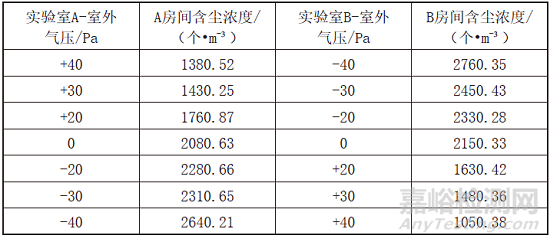 表3 不同壓差下相鄰實(shí)驗(yàn)室含塵濃度