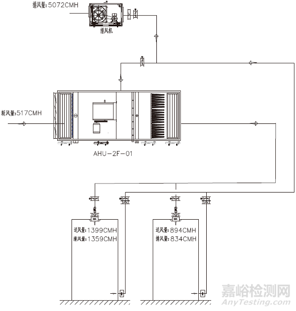 圖1 地下一層實(shí)驗(yàn)室通風(fēng)系統(tǒng)原理圖