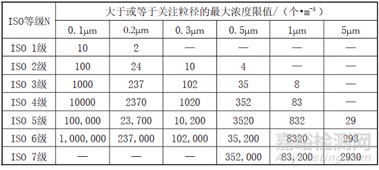 表1 潔凈室及潔凈區(qū)空氣潔凈度整數(shù)等級(jí)