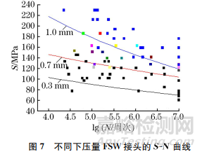 (3)當(dāng)下壓量為0.3,0.7,1.0mm時,7N01鋁合金攪拌摩擦焊接頭的疲勞強(qiáng)度分別為69.50,103.60,119.02MPa,隨下壓量的增加,接頭的疲勞強(qiáng)度增大。