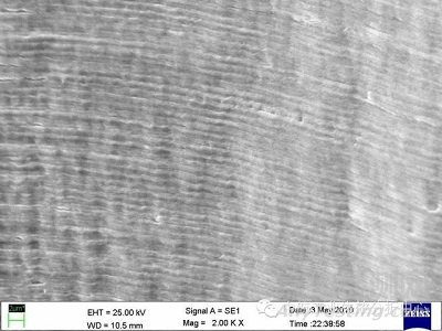 第一,條帶方向。幾乎所有的疲勞斷裂都可以觀察到條帶特征,此時,條帶弧線的圓心位置,就是指向源區(qū)了。但是,需要注意的是,條帶只是極微觀的特征,而且在局部位置由于應(yīng)力改變,可能造成條帶擴展方向轉(zhuǎn)變的情況。因此,該方法只能作為輔助判別手段。