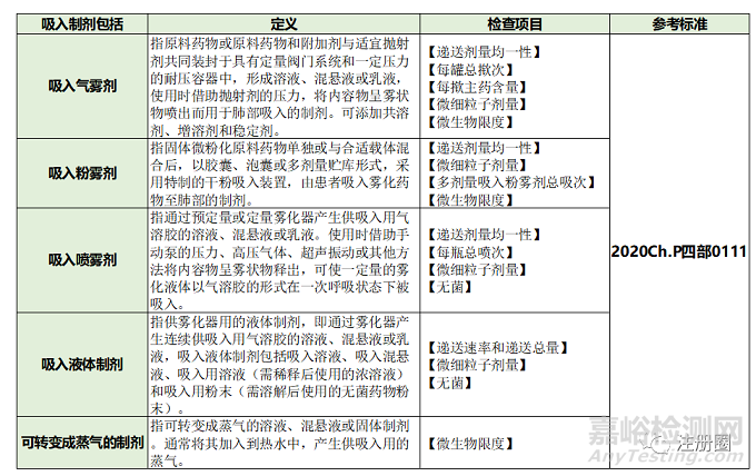 ▲ 表1-2020年版《中國藥典》四部0111 吸入制劑