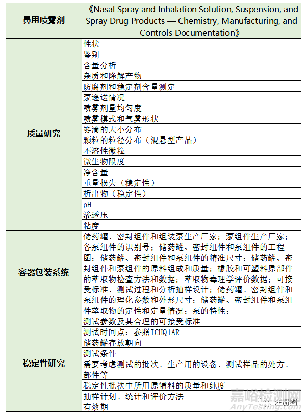▲ 表5-《Nasal Spray and Inhalation Solution, Suspension, and Spray Drug Products — Chemistry, Manufacturing, and Controls Documentation》