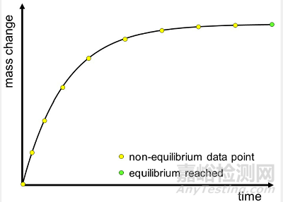 在相對濕度發(fā)生變化后,可以利用微量天平測定樣品在一定時間間隔內(nèi)吸附或釋放水分。在吸附/解吸的早期階段,重量的變化比較大。隨著時間的推移,這個過程會趨向于平衡,重量的變化也會不斷變小。