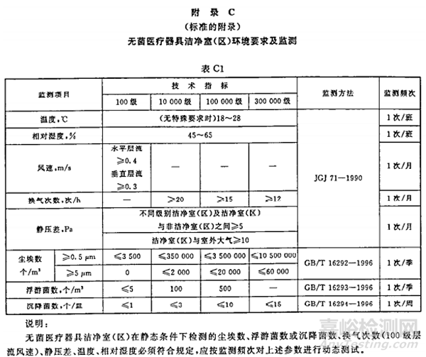 YY 0033-2000《無菌醫(yī)療器具生產(chǎn)質(zhì)量管理規(guī)范》,附錄A給出了“無菌醫(yī)療器具潔凈室(區(qū))空氣潔凈度級別表”,附錄C給出“無菌醫(yī)療器具潔凈室(區(qū))環(huán)境要求及檢測”, 附錄D給出“人員進出潔凈生產(chǎn)區(qū)的一般程序”。