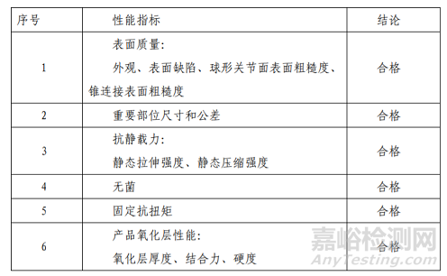 開發(fā)人開展了產(chǎn)品的力學(xué)性能研究,包括靜態(tài)壓縮、靜態(tài)拉伸、抗扭轉(zhuǎn)力矩試驗(yàn)、股骨頭相對(duì)角運(yùn)動(dòng)范圍評(píng)價(jià)、與預(yù)期配合使用髖臼內(nèi)襯的磨損性能研究及對(duì)磨損顆粒的組成及含量進(jìn)行分析;明確了各項(xiàng)試驗(yàn)中樣品可代表產(chǎn)品最差情形的確定依據(jù),并論證了各項(xiàng)性能試驗(yàn)結(jié)果的臨床可接受性。