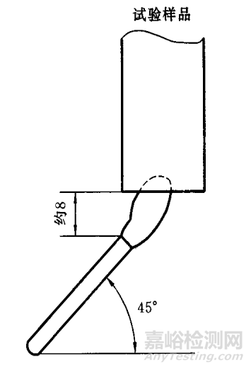 8.4 試驗火焰應(yīng)施加在試驗樣品易于受到火焰影響的表面部位,此火焰可由正常使用,故障條件或偶然起燃源所引起的。