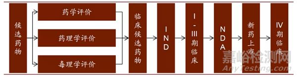 候選藥物確定后,新藥研發(fā)就進入開發(fā)階段,開發(fā)階段主要分為以下五個環(huán)節(jié):臨床前實驗、臨床研究、新藥申請、批準(zhǔn)上市、上市后檢測。